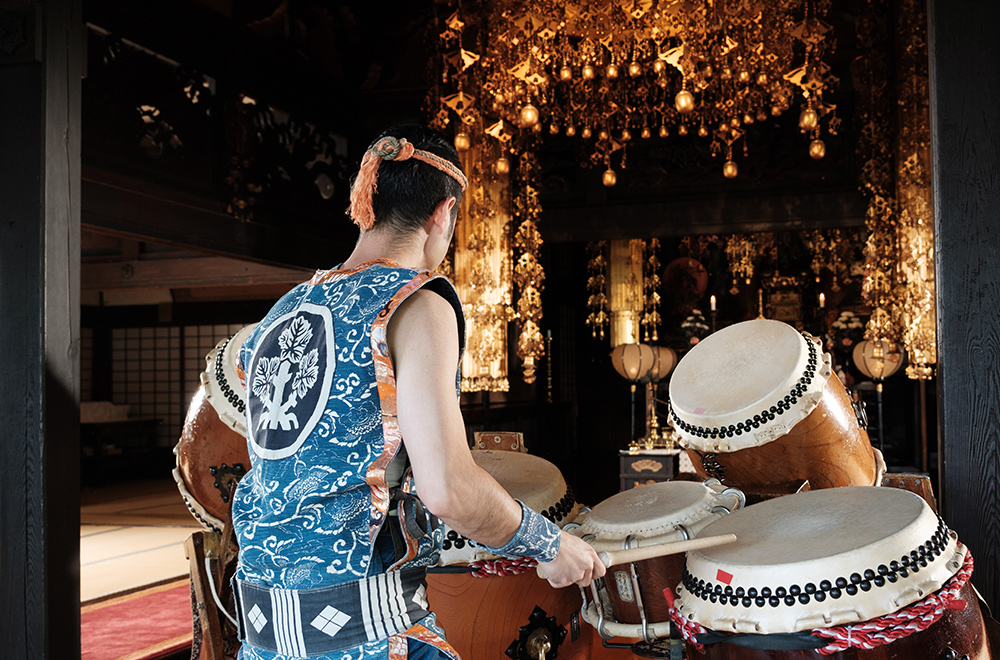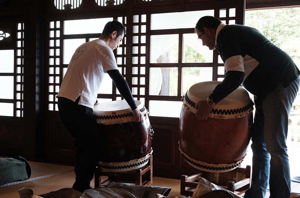 その迫力ある太鼓の響きは水面をゆらし、周囲の山々と一体化した感覚を体感できます。